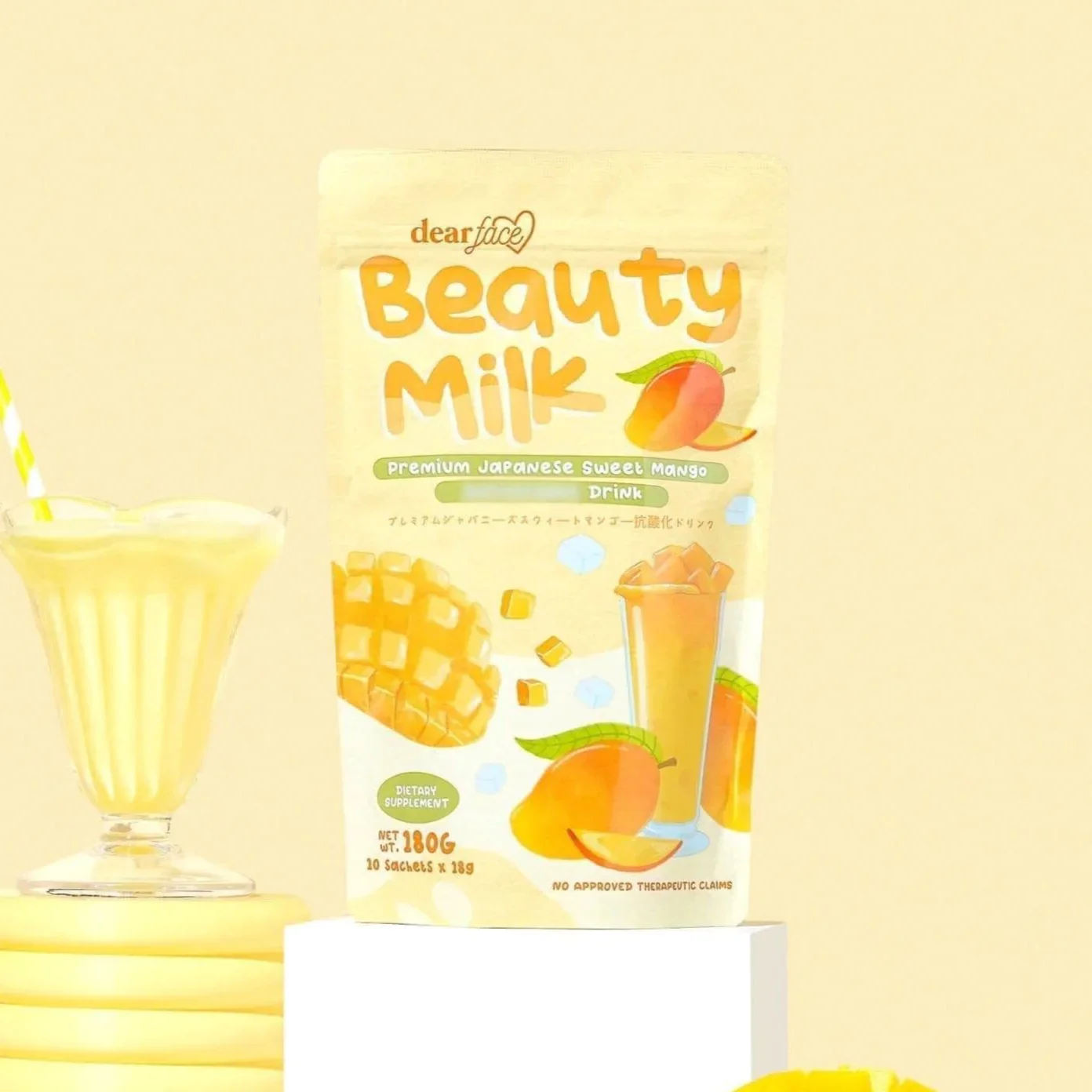 Dear Face Beauty Milk Premium Japanese Sweet Mango - your ultimate immune-boosting hero! This milky and tasty mango drink not only satisfies your taste buds but also offers incredible benefits for your mind, body, and skin. Packed with a blend of powerful antioxidants like guava, goji berry, acai berry, grapeseed, avocado, and rosehip extract, it works wonders in promoting overall wellness and vitality.